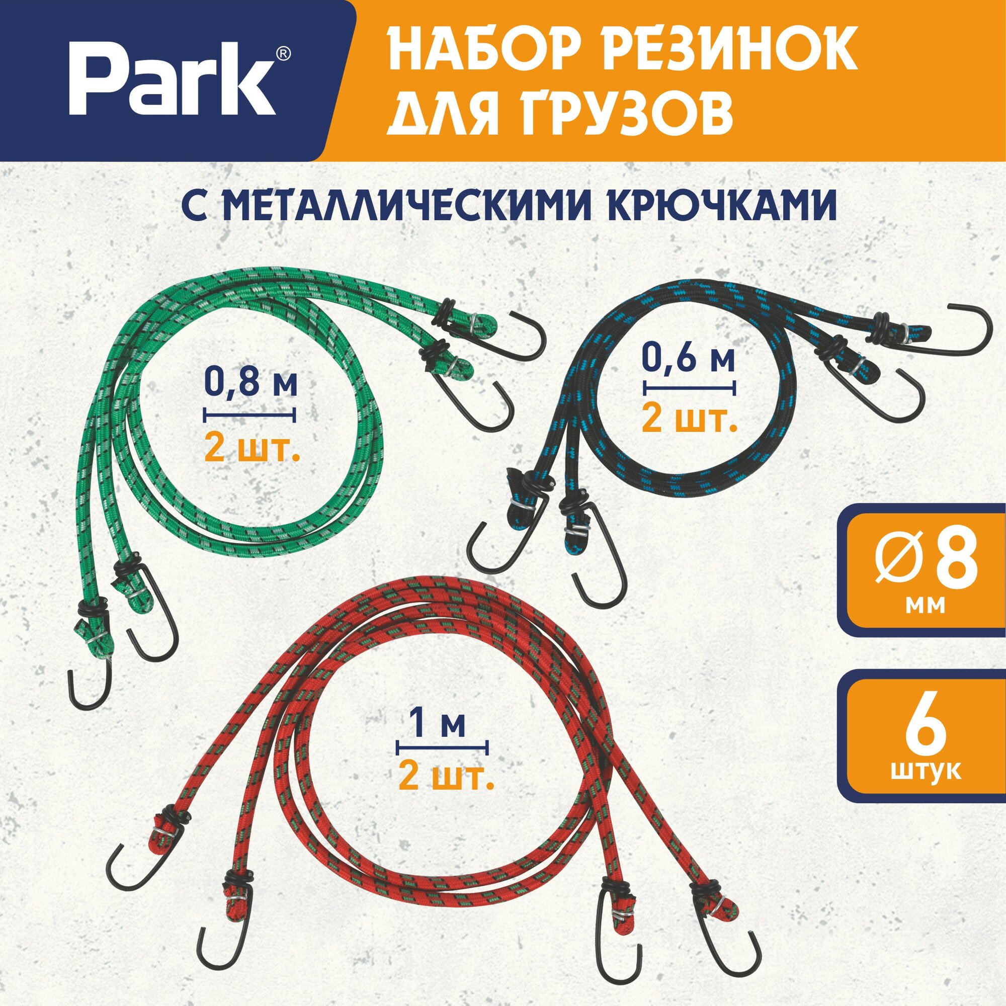 Набор стяжек (резинок) для грузов с металлическими крючками, 6 шт 105112 Park (арт. 850282)