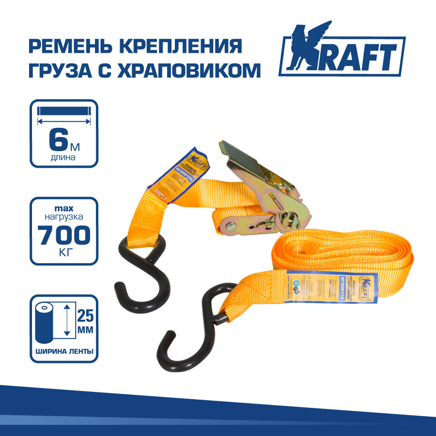 KRAFT KRAFT Ремень крепления груза с храповиком 6м 0,7 т KRAFT KT800113