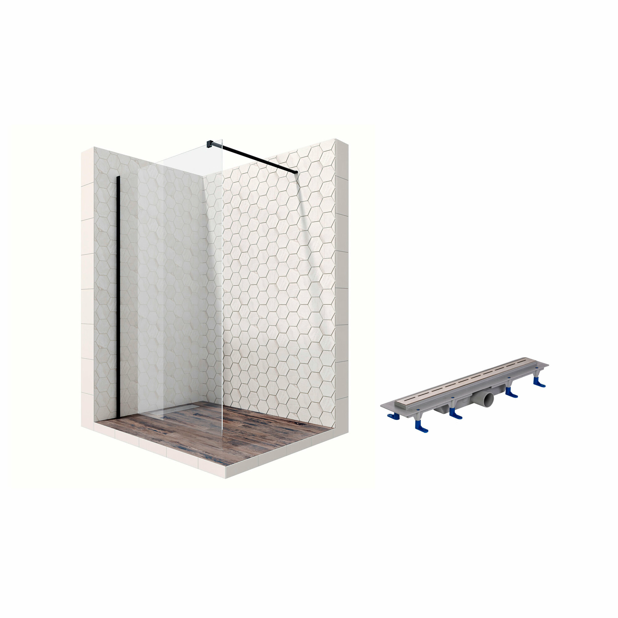 Комплект душевого ограждения (перегородка) со свободным входом с линейным трапом Ambassador Walk-in 15031109-ST8, с EasyClean, 90 см