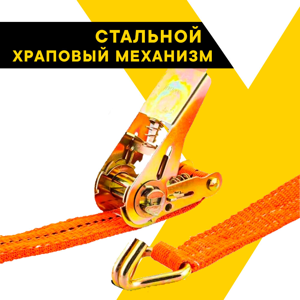 Cтяжные ремни с храповым механизмом для стяжки и крепления груза, такелажный ремень для грузчиков, длина 10м , ширина 75мм, 10/20т