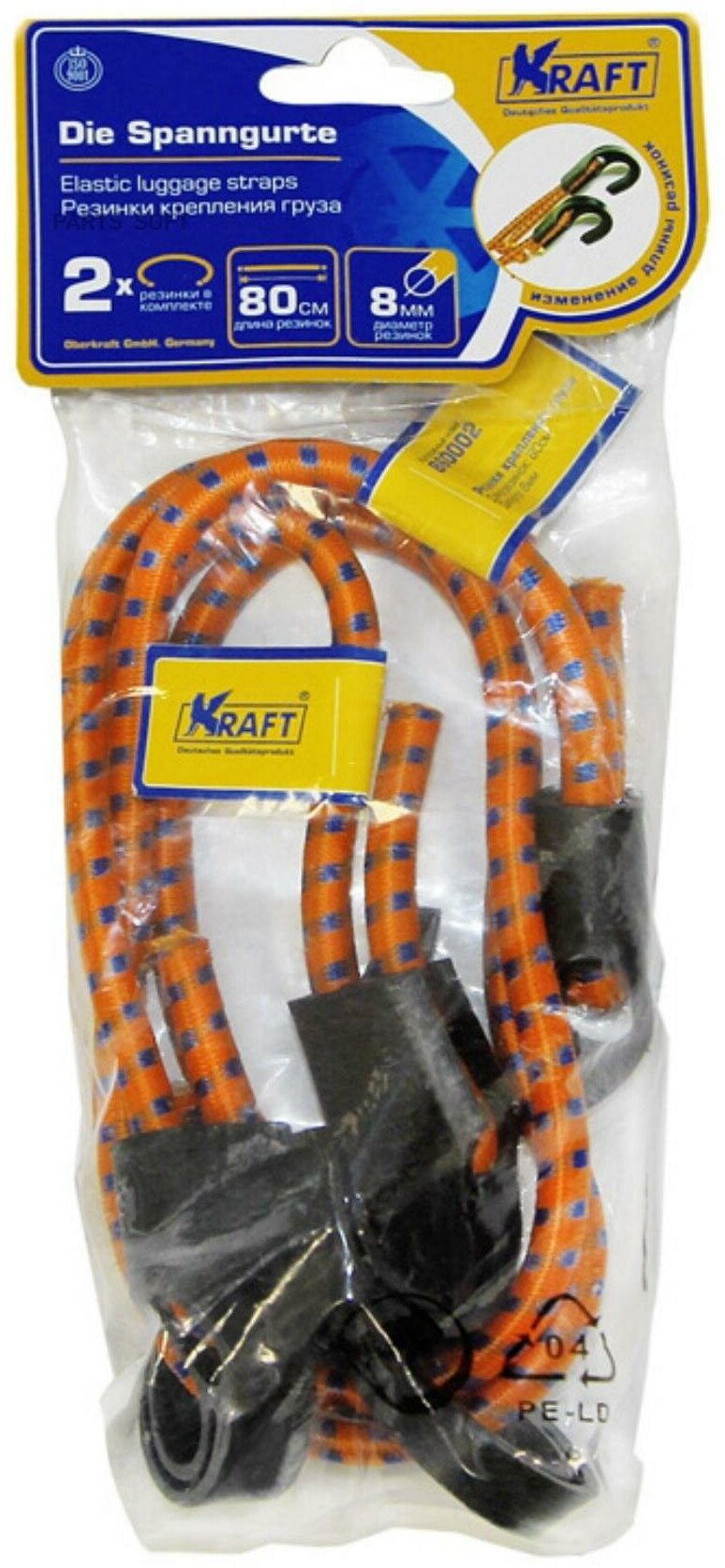 Набор резинок в багажник (80 см) "KRAFT" (D=8 мм, пласт. крючки) (2 шт.) KRAFT KT 860002 | цена за 1 шт