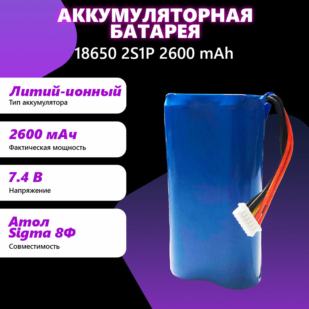 Аккумуляторная батарея 18650 2S1P 2600 mAh Совместимость: АТОЛ Sigma 8Ф интересное: