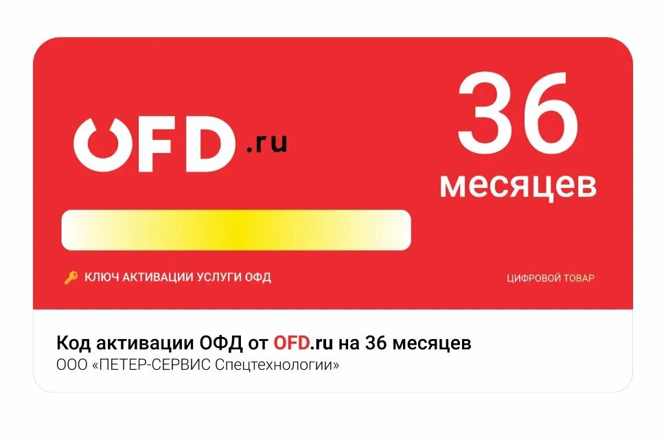 Код активации услуги ОФД от OFDru 36 месяцев интересное: