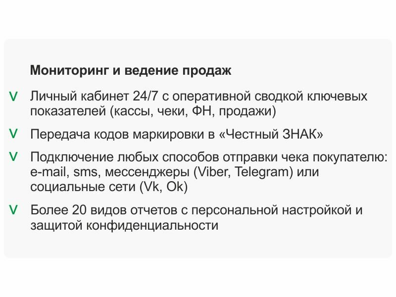 | Соответствие законодательству | 54ФЗ / ЕГАИС / платформа ОФД |