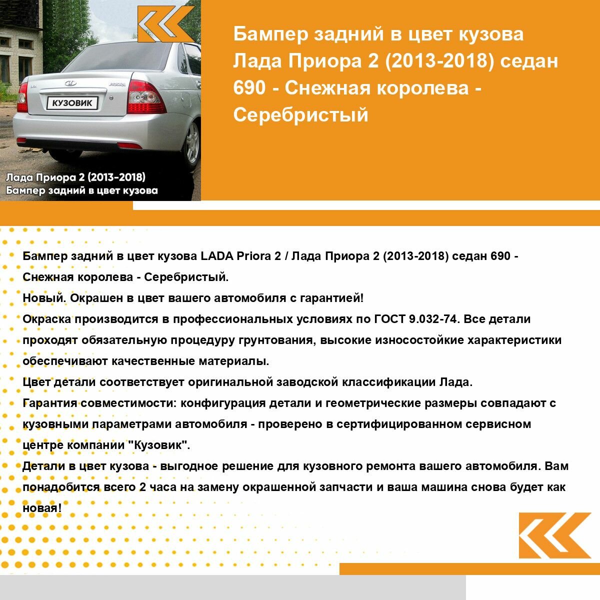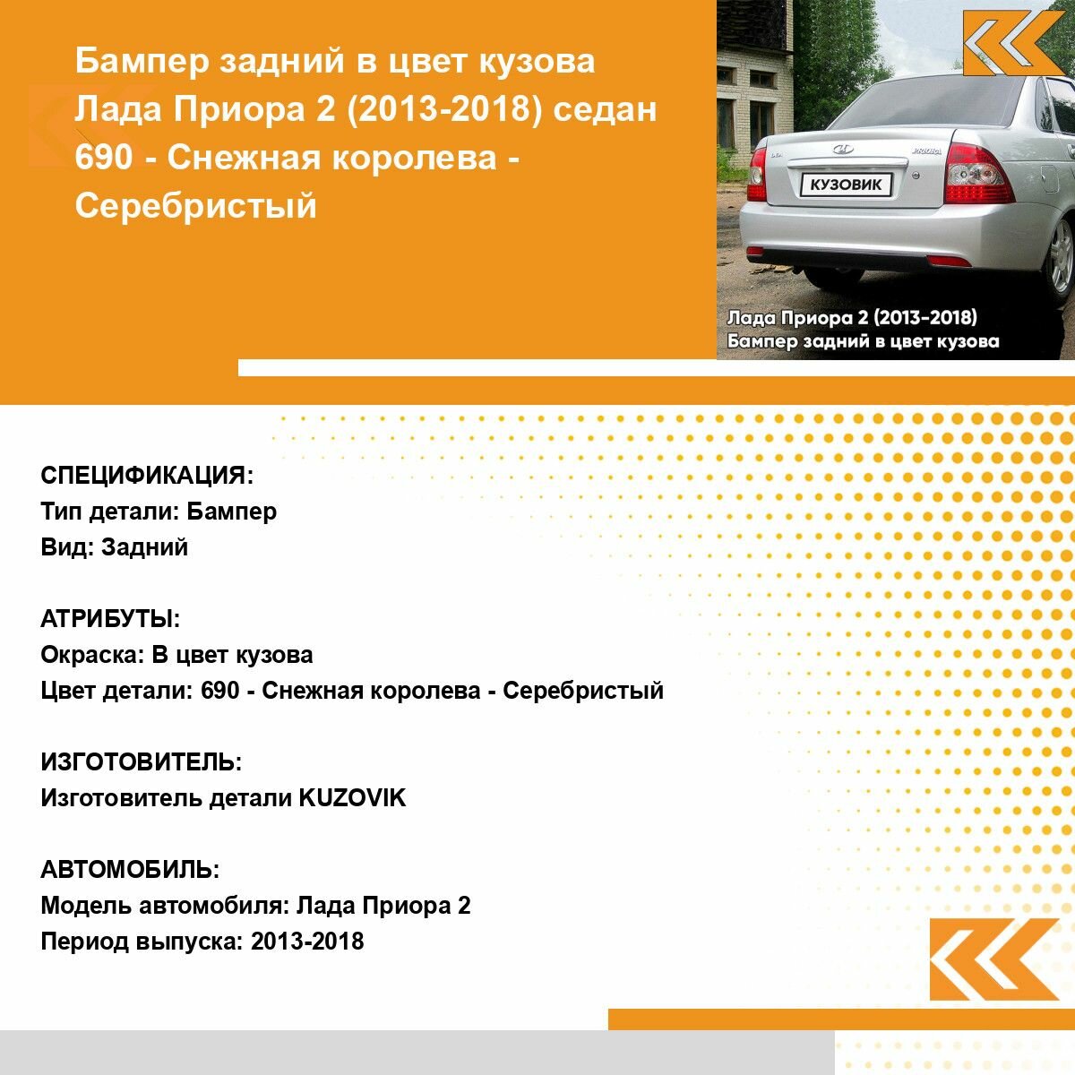 Бампер задний в цвет кузова Лада Приора 2 седан 690 - Снежная королева - Серебристый интересное: