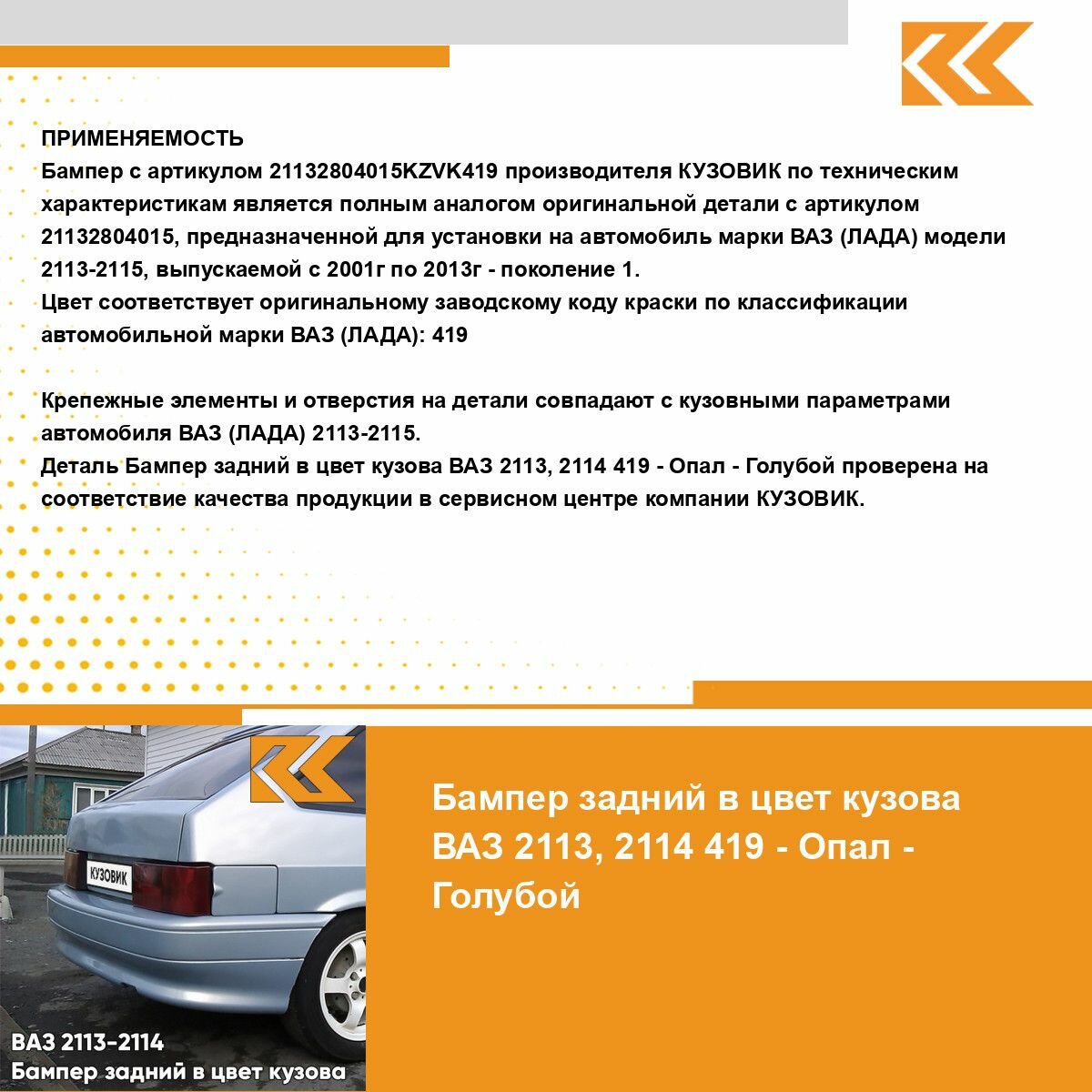 Бампер задний в цвет кузова ВАЗ 2114 2113 419 - Опал - Голубой интересное: