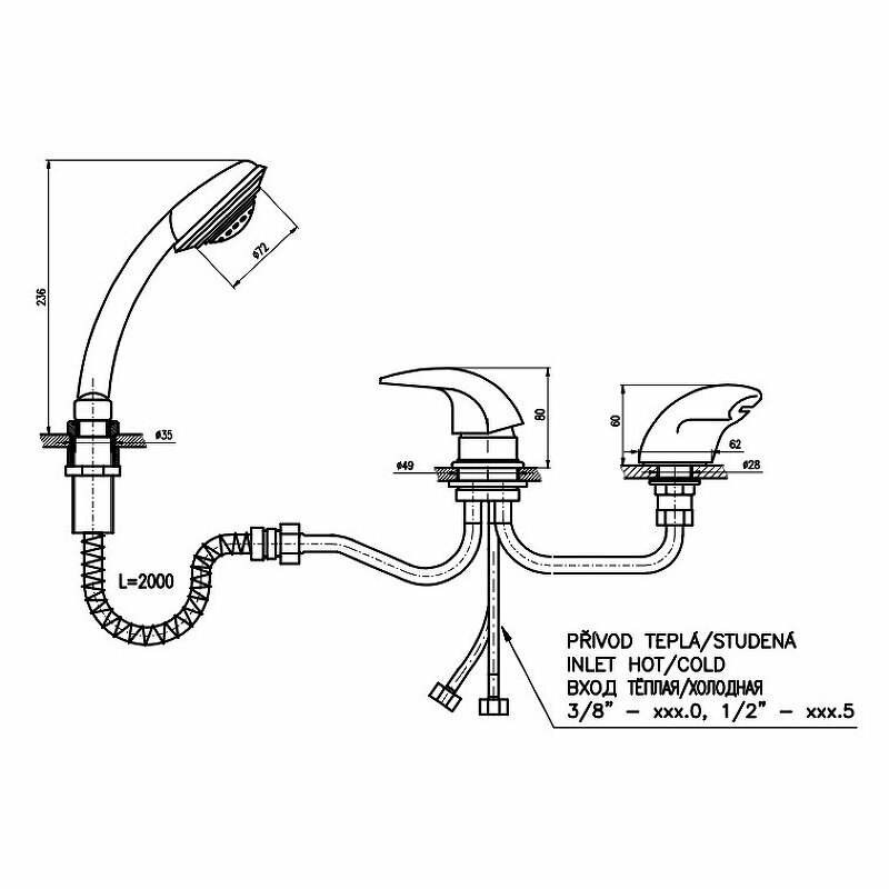 Rav Slezak Dunaj Смеситель для ванны на 3 отверстия переключатель в миксе D468.5Y душевой шланг с пружиной 2м цвет хром (D470.5Y)