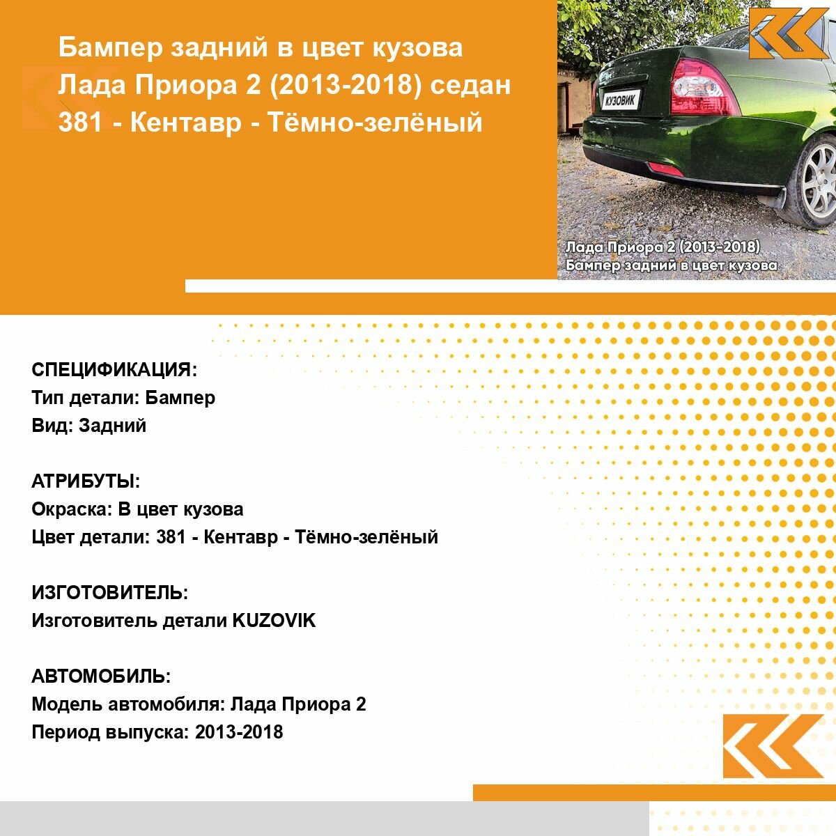 Бампер задний в цвет кузова Лада Приора 2 седан 381 - Кентавр - Тёмно-зелёный интересное: