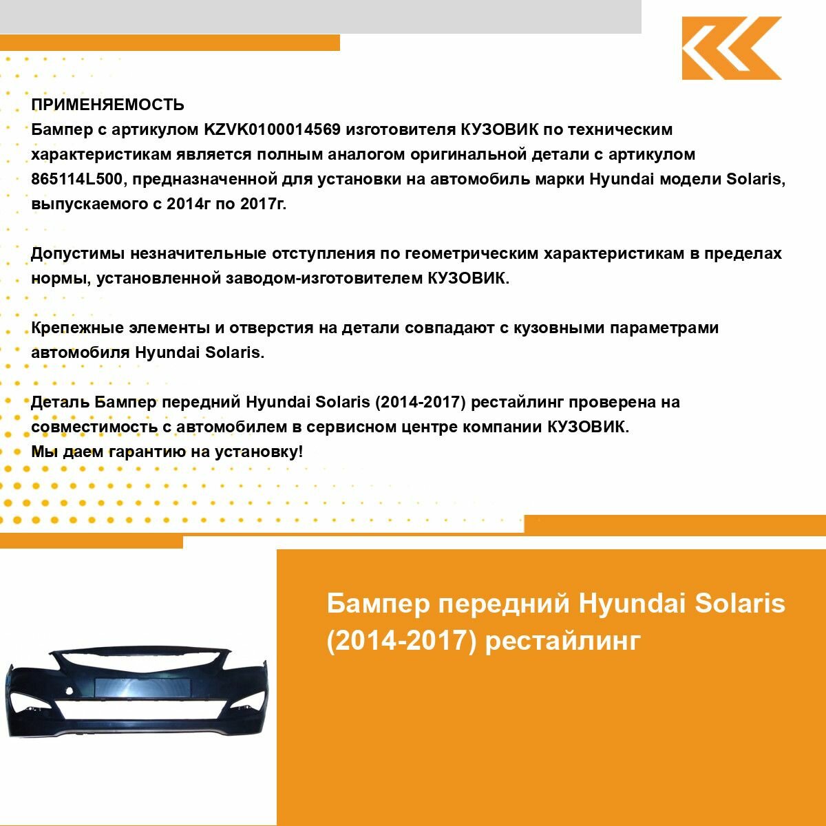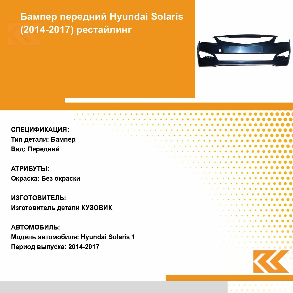 Бампер передний Hyundai Solaris Хендай Солярис 1 (2014-2017) рестайлинг интересное: