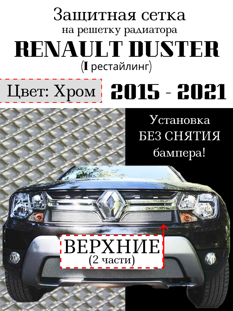 Защита радиатора (защитная сетка) Renault Duster 2015-2021 верхняя хромированная интересное: