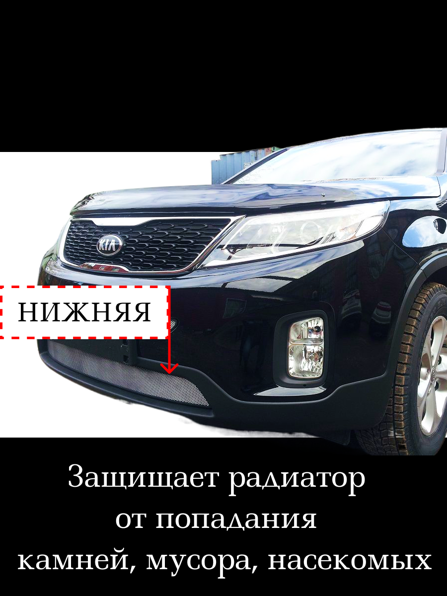 Защита радиатора (защитная сетка) KIA Sorento 2013-> хромированная нижняя интересное: