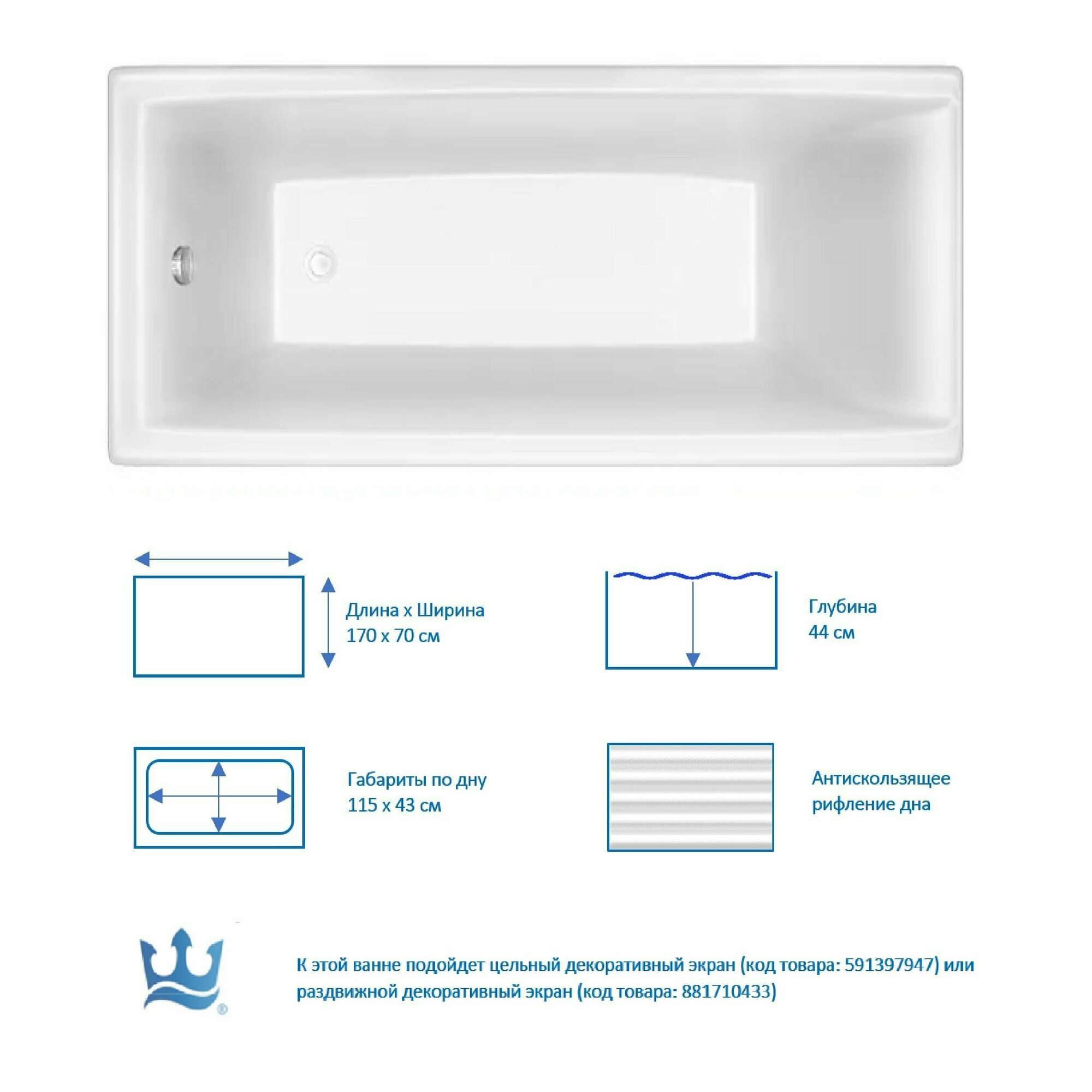 Ванна Тритон Джена 170x70 без каркаса