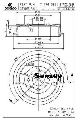 SIMPECO SP00010230 Барабан тормозной Volvo о.н.1599009