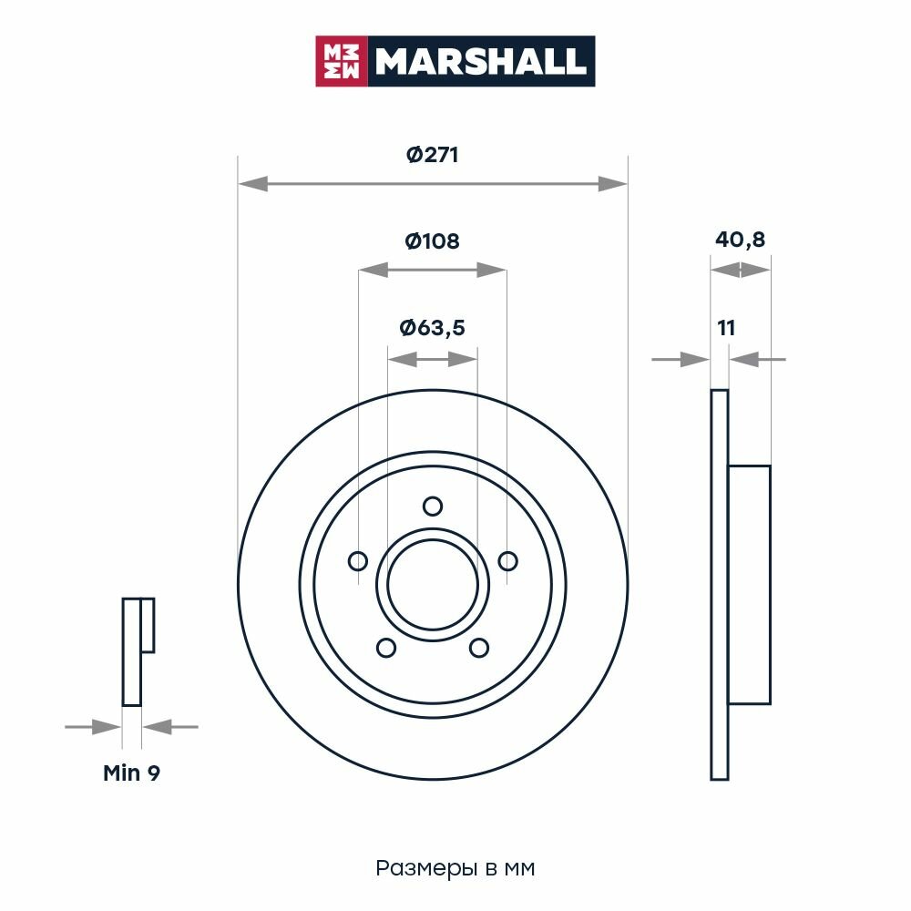 Диск тормозной Ford Focus III 11-, C-Max 10- задний 271 x 11 Marshall MARSHALL M2000475 | цена за 1 шт