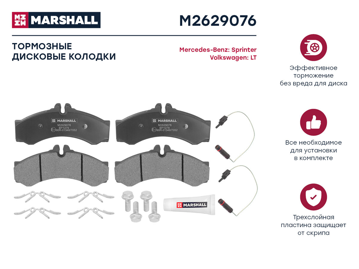 M2629076_колодки Дисковые Передн.! Mb Sprinter I 95> / Sprinter Classic 13>, Vw Lt Ii 96> MARSHALL арт. M2629076