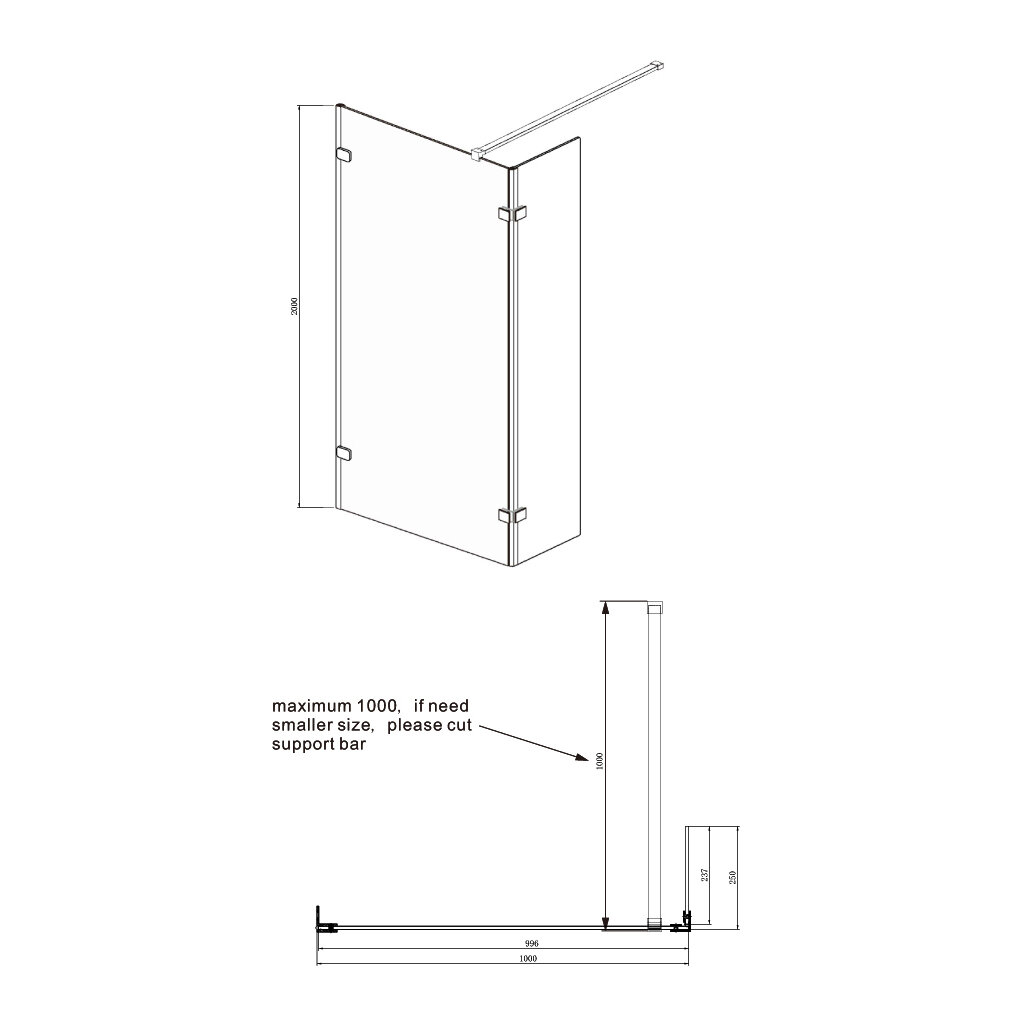 Душевая перегородка 90х25 см с трапом и свободным входом Ambassador Walk-in 15031105-ST11: душевая ширма из стекла 8 мм, профиль хром