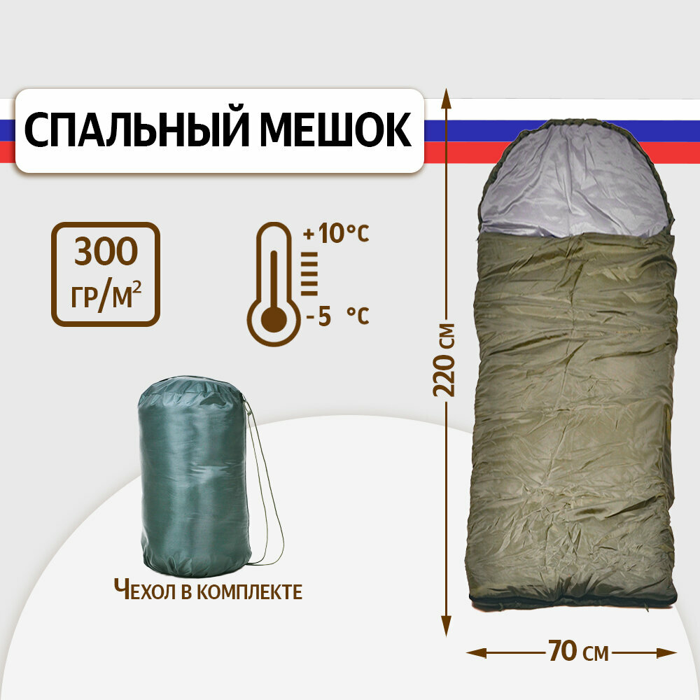 Спальный мешок SBX СП3 туристический с подголовником 220 см, до -5 С, хаки интересное: