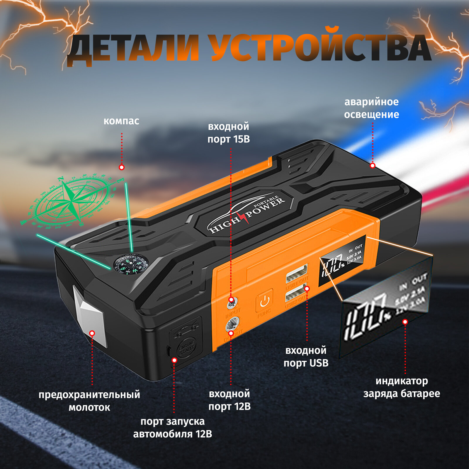 Пусковое зарядное устройство автомобиля и мотоцикла High Power 18.8-AMH интересное: