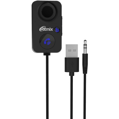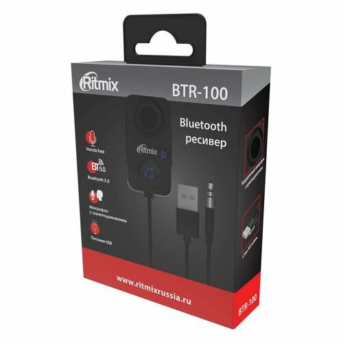 Автомобильный Bluetooth ресивер Ritmix BTR-100, порт питания- USB-A, подключение AUX (3.5мм), Bluetooth 5.0
