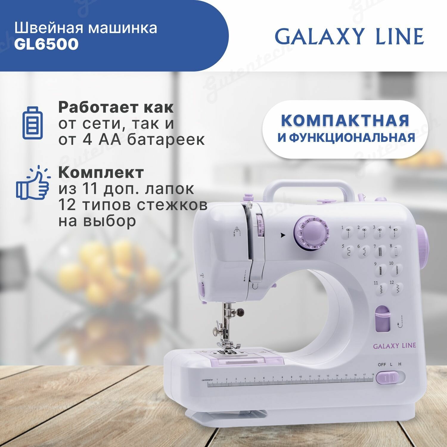 Швейные машинки Galaxy Швейная машина Galaxy GL 6500, 9 Вт, 12 видов строчки, автомат, белая