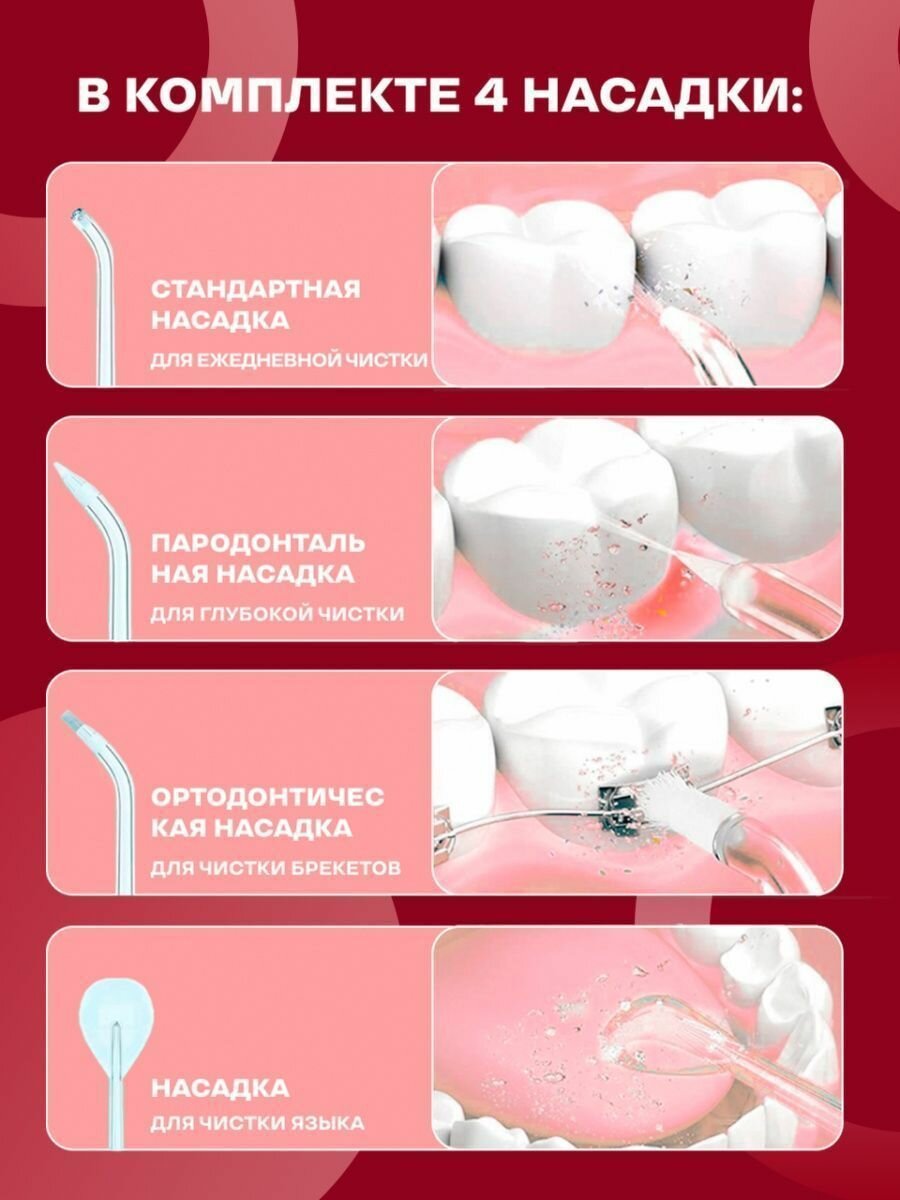 для струйной чистки / для чистки языка / ортодонтическая (для брекетов) / пародонтологическая (для десен)