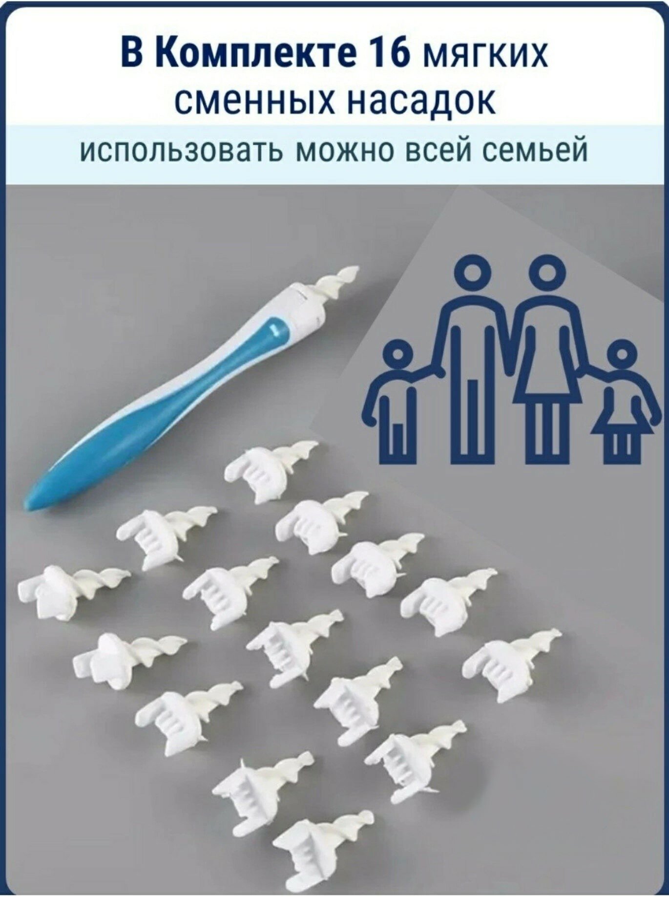 Ушная палочка силиконовая.Ухочистка многоразовая мягкая спиралевидная для взрослых и детей. Прибор для чистки ушей.16 насадок набор.
