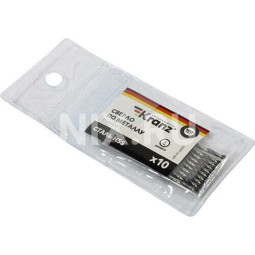 KRANZ Сверло по металлу 2,0x49x24 мм HSS 10 шт KR-91-0605