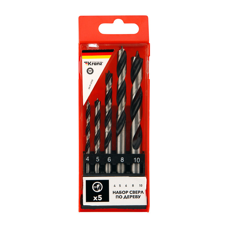 Универсальный набор сверл по разным видам древесины KRANZ 4-10 мм, 5 штук в пластиковой упаковке