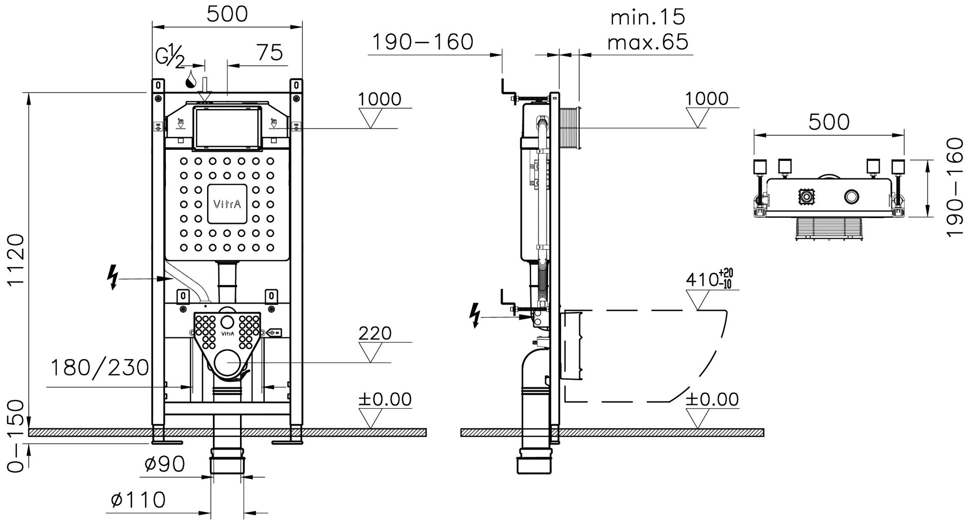 Инсталляция с унитазом Vitra Integra Round тонкое сиденье микролифт клавиша хром глянцевый 9856B003-7205