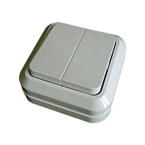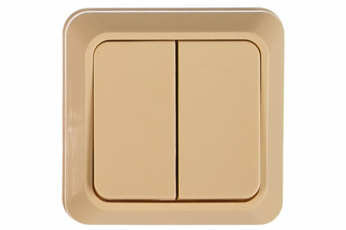 Выключатель двухклавишный открытой установки с подсветкой слоновая кость, 10 А, Ладога