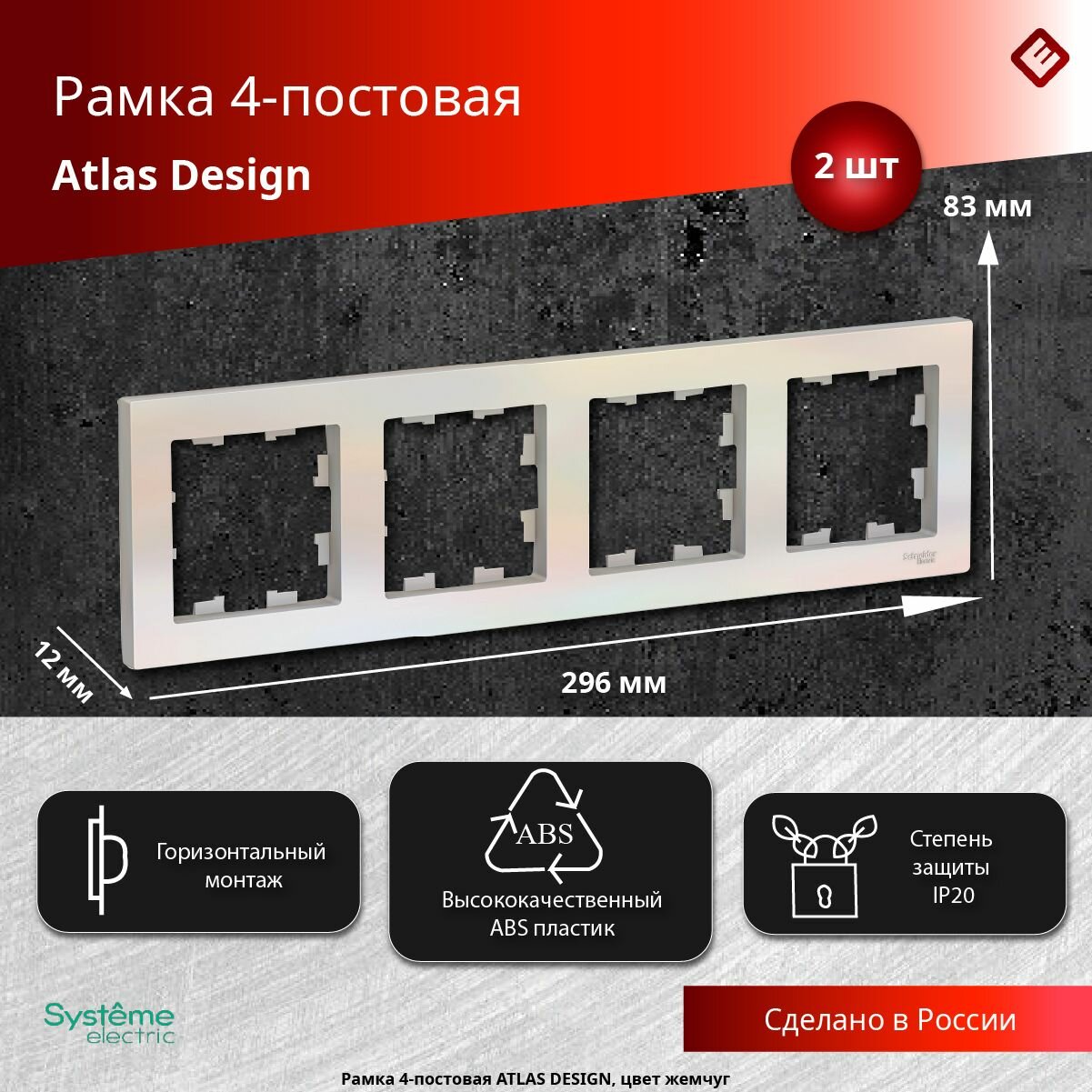 СохранитьРамка Schneider Electric AtlasDesign четырехместная универсальная жемчуг (комплект из 2 шт) интересное: