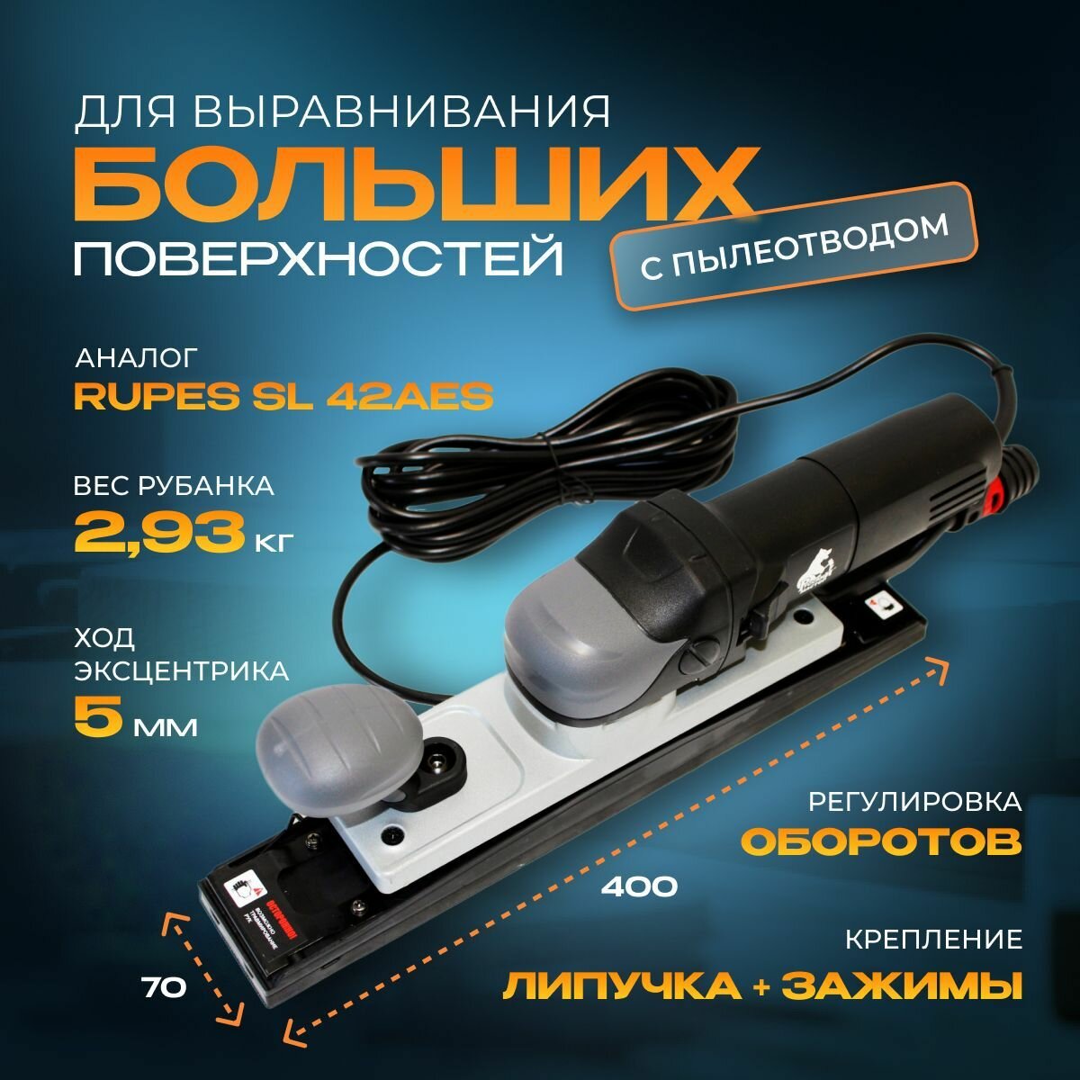 Шлифовальный рубанок Русский Мастер ES-475Q (400x70мм) шлифрубанок