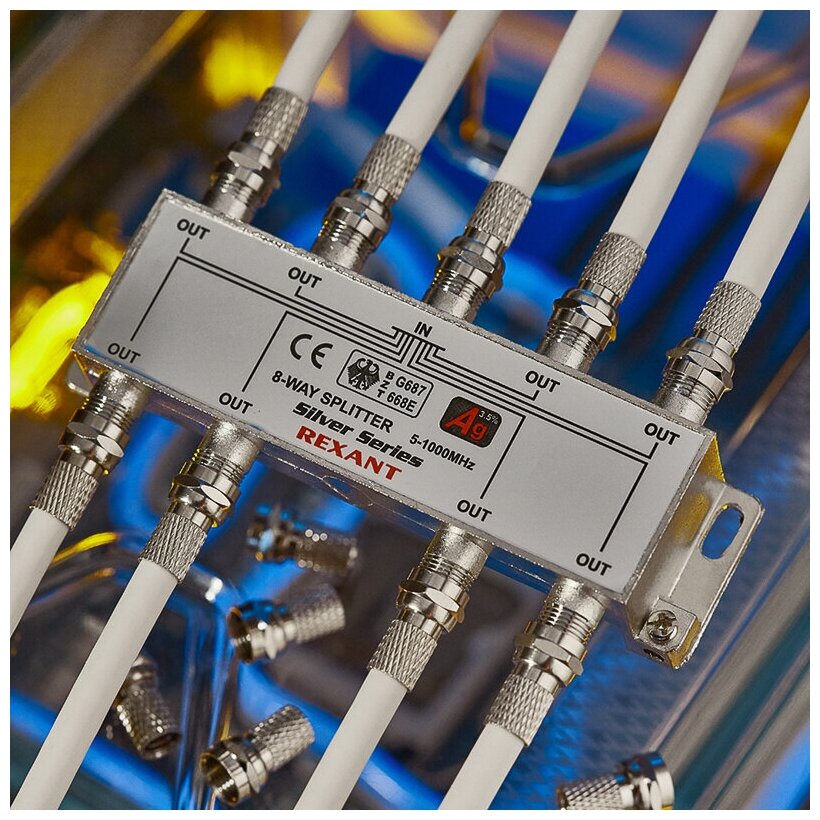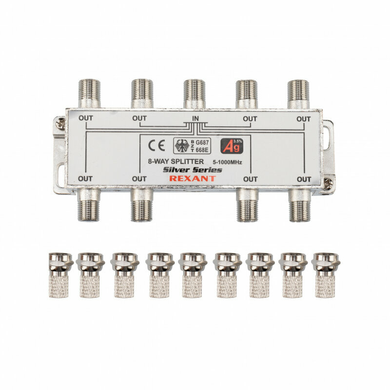 Антенный делитель ТВ-сигнала REXANT "Silver" сплиттер на 8 выходов под F-разъемы, 5-1000 МГц