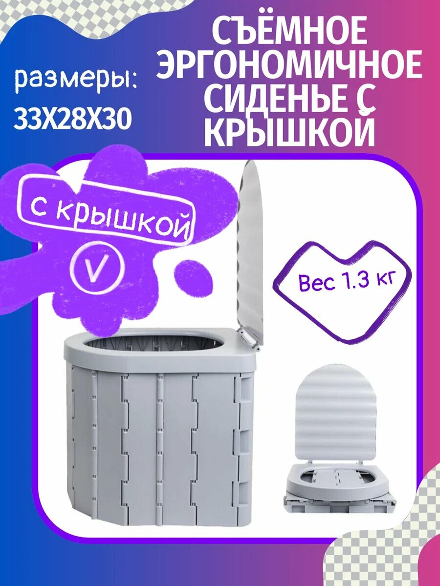 Купить Компактный, портативный, складной туалет, для походов и путешествий, серый