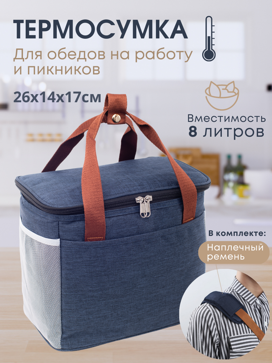 Сумка-холодильник для еды для ланч боксов, обедов и пикников "Осло"/ Термосумка с ручками 8 литров, цвет синий интересное: