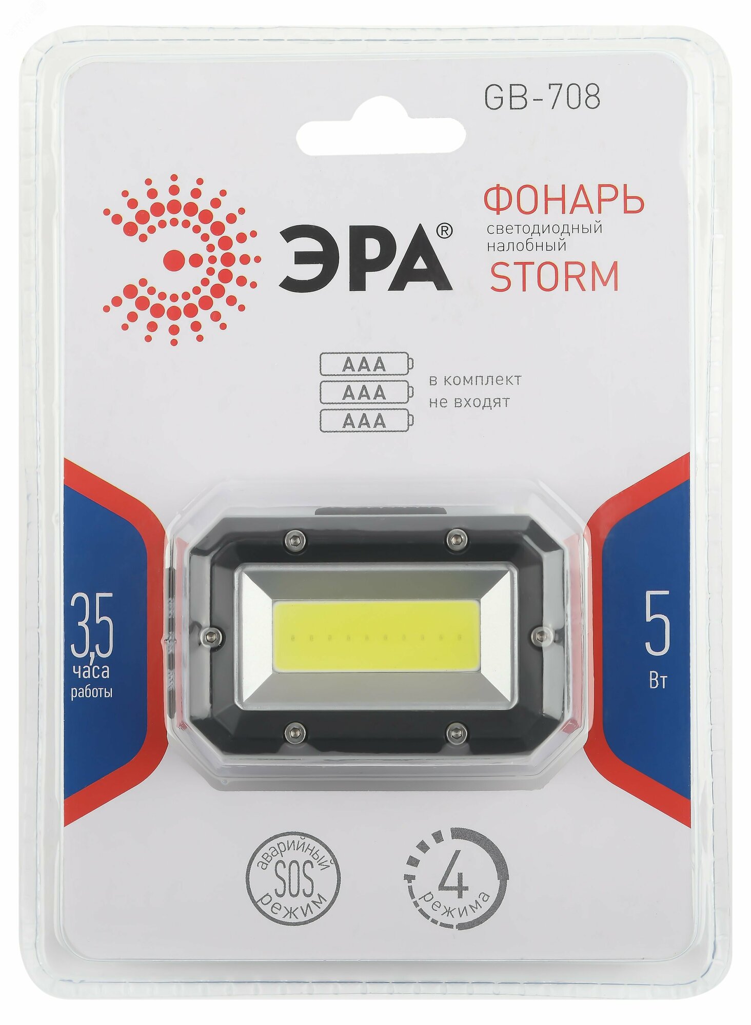 Купить Фонарь налобный светодиодный GB-708 «Шторм» на батарейках 3 режима 5Вт СОВ 3хААА ЭРА Б0052750