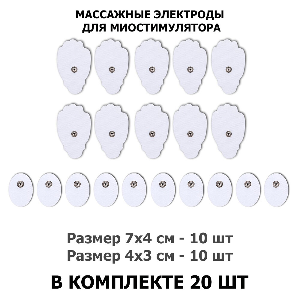 Электроды массажные EMS-120PL для миостимулятора, 10.5х5/7х4/4х3 см, 20 шт, универсальные