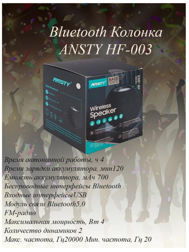 Портативная акустика ANSTY HF-003, 3 Вт, черный интересное: