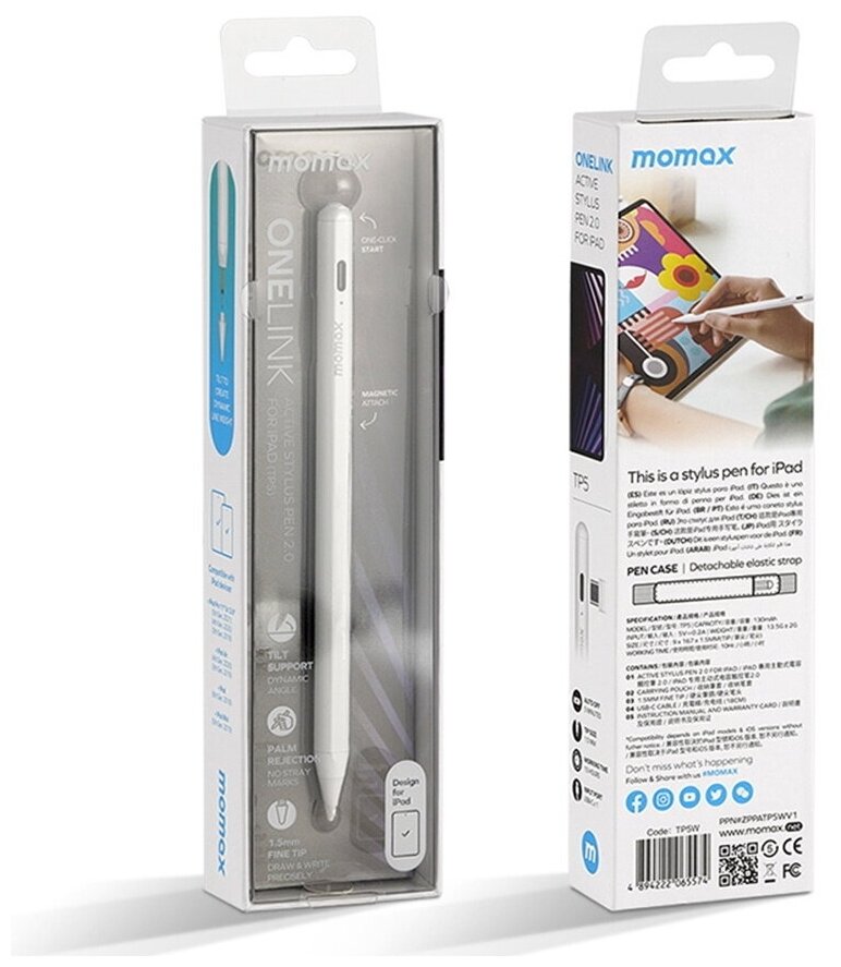 Ниже Вы можете прочитать отзывы на Стилус для планшетов Momax TP5 OneLink Active Stylus Pen 2.0 для iPad (TP5W), ознакомится с подробными характеристиками, посмотреть интересные обзоры и фотографии на Стилус для планшетов Momax TP5 OneLink Active Stylus Pen 2.0 для iPad (TP5W).