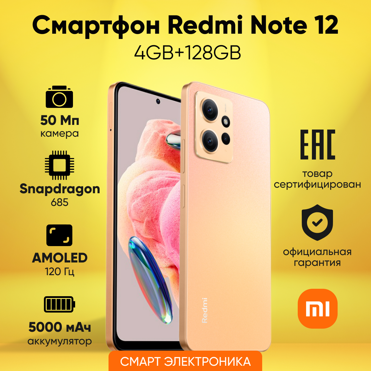 Смартфон Redmi Note 12 8/256 Гб Sunrise Gold