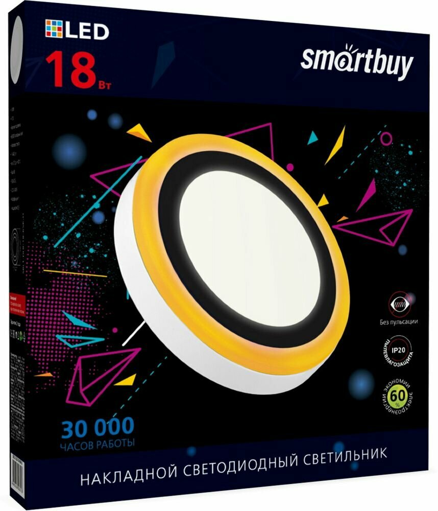 Светильник накладной светодиодный Smartbuy 18 Вт LED 6500 К с желтой подсветкой