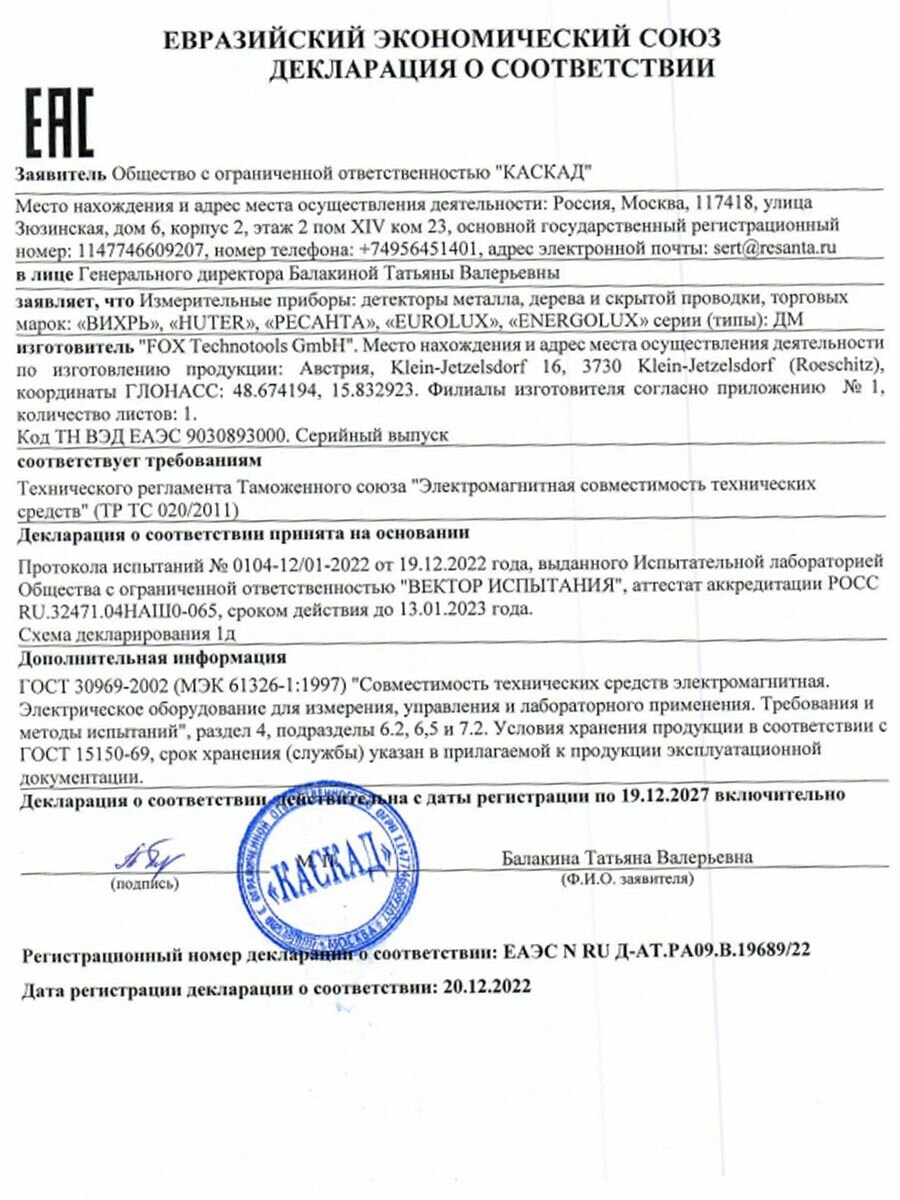 Детектор металла РЕСАНТА ДМ-100, 61/10/534