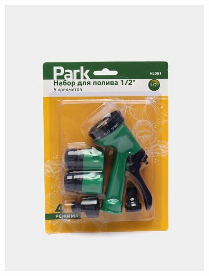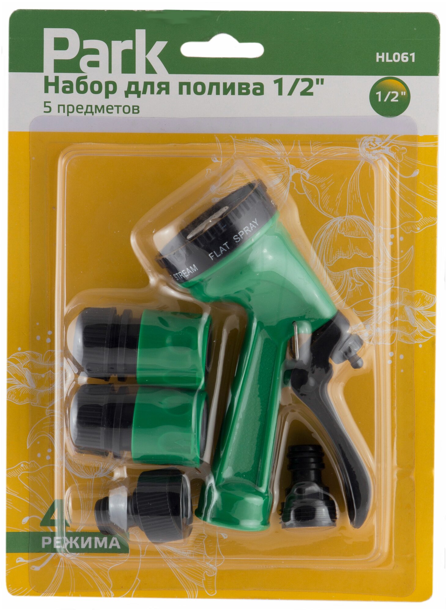 Набор для полива Park HL061, пистолет 4 режима, соединители 1/2", адаптеры, 5 предметов