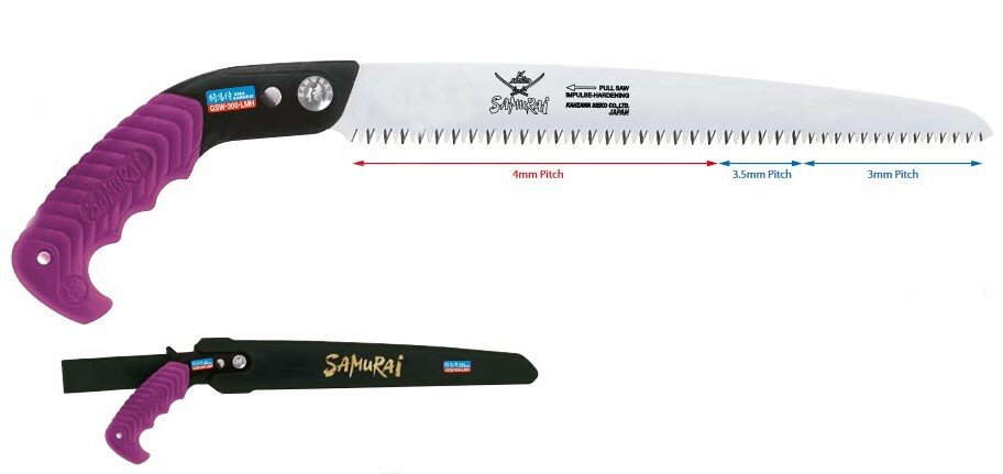 Пила Samurai с прямым полотном, L=300, с перем. шагом 3/3,5/4мм в чехле, с поясным крепл.