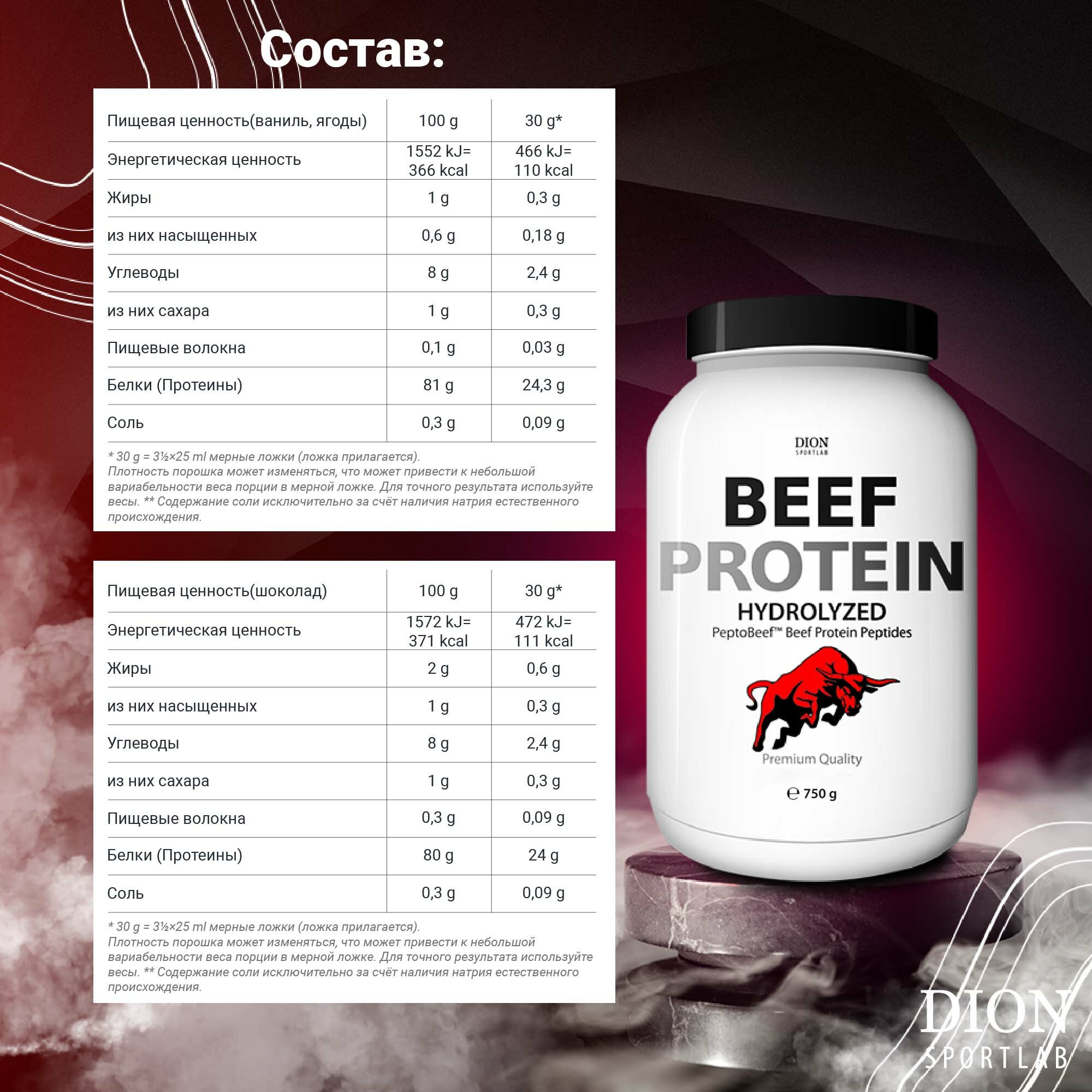 Профессиональный Гидролизованный Пептидный Beef Protein Dion Sportlab, Говяжий Протеин. Вкус: лесные ягоды. Порошок 750г, Латвия интересное: