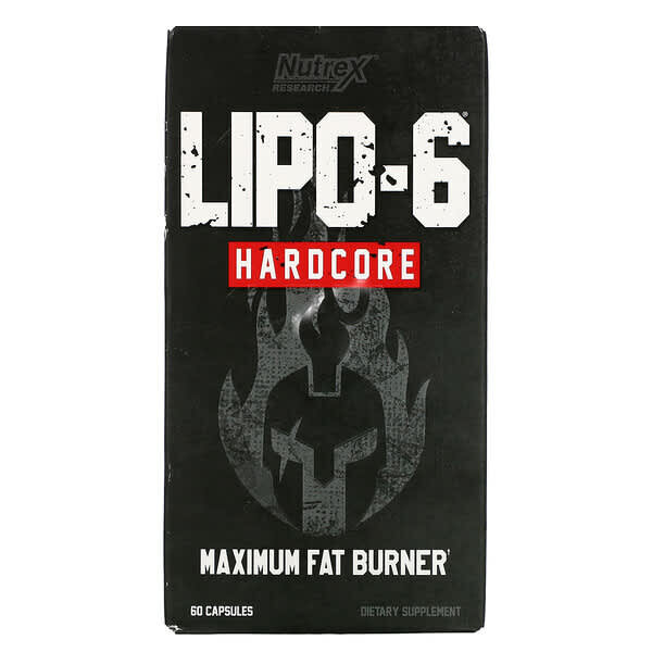Nutrex Lipo-6 Hardcore, Жиросжигатель для похудения и контроля аппетита, 60 капсул, Спортивное питание, термогеник, для ускорения метаболизма