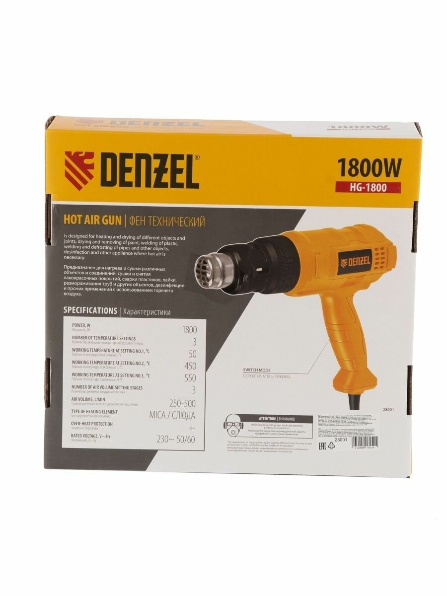 Фен технический HG-1800, 1800 Вт, 3 режима, DENZEL 28001