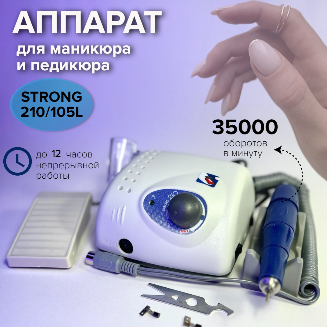 Ниже Вы можете прочитать отзывы на Аппарат для маникюра и педикюра Strong 210/105L в коробке, 35000 об/мин, 1 шт, белый/синий, ознакомится с подробными характеристиками, посмотреть интересные обзоры и фотографии на Аппарат для маникюра и педикюра Strong 210/105L в коробке, 35000 об/мин, 1 шт, белый/синий.