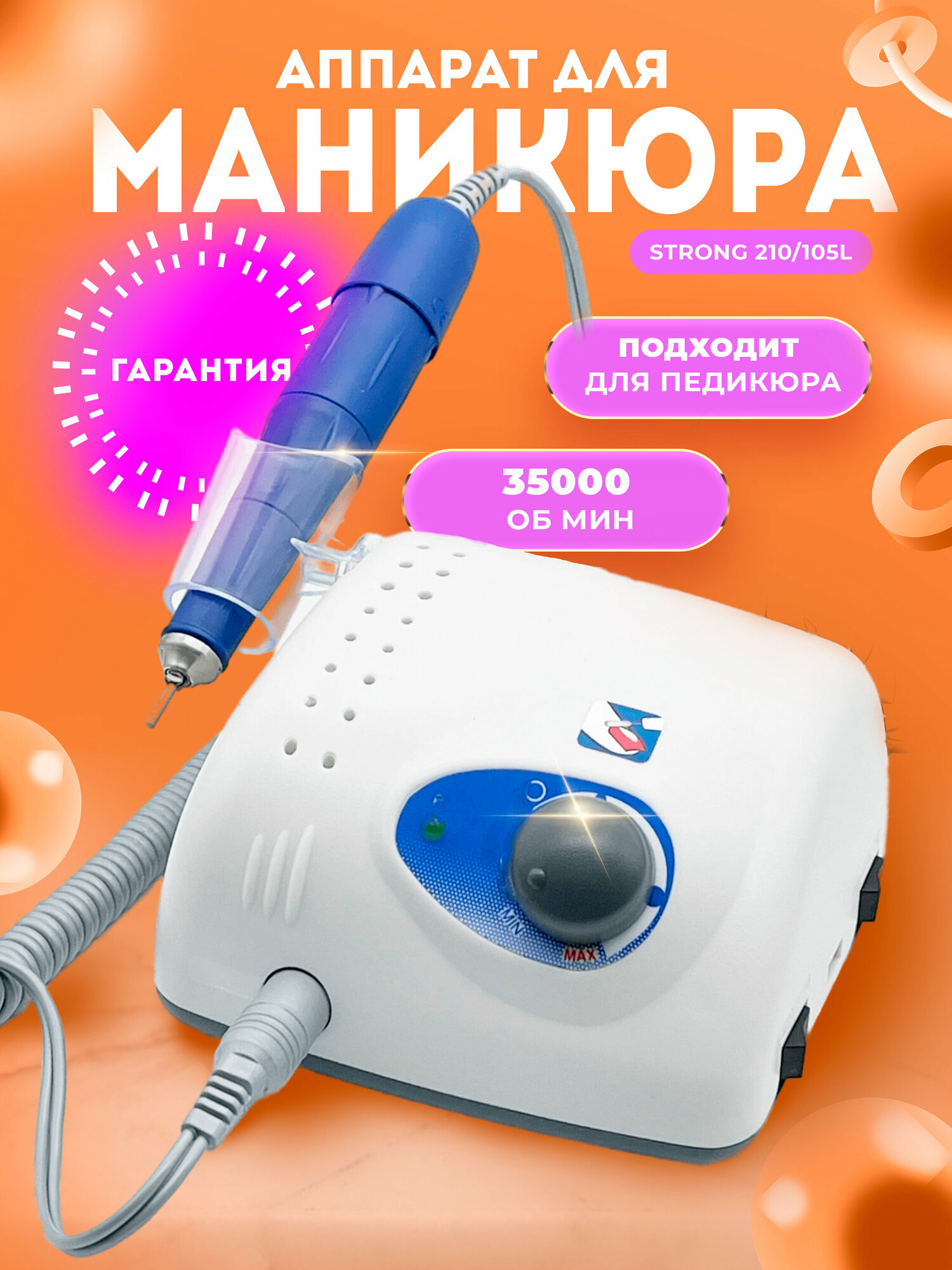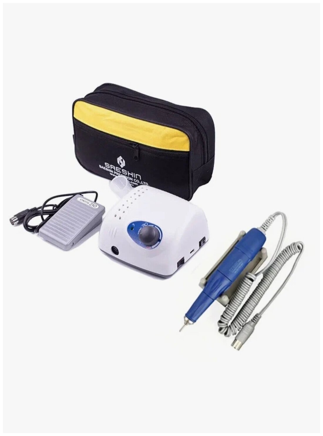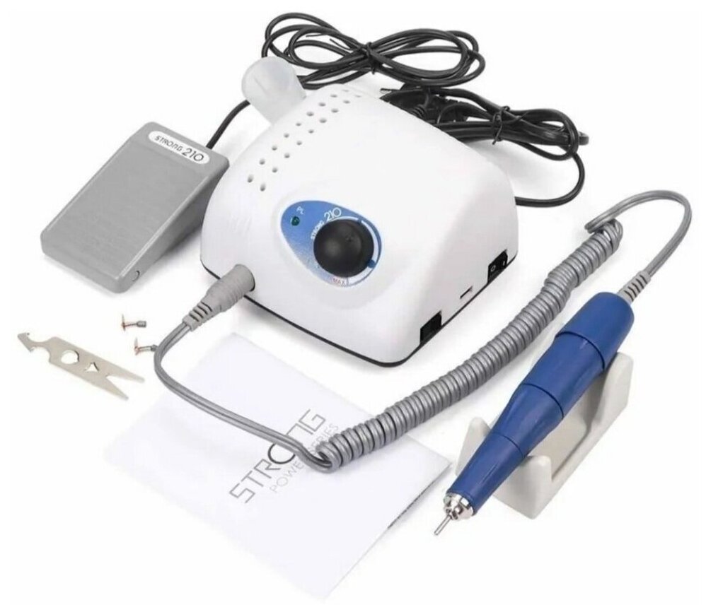 Аппарат для маникюра и педикюра Strong 210/105L в коробке, 35000 об/мин, 1 шт, белый/синий интересное: