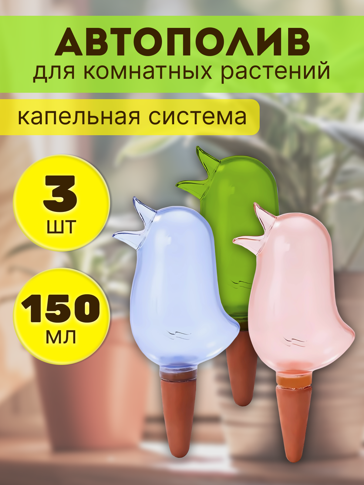 Купить Автополив комнатных растений, цветов, капельный полив, лейка комнатная цвет розовый голубой зеленый